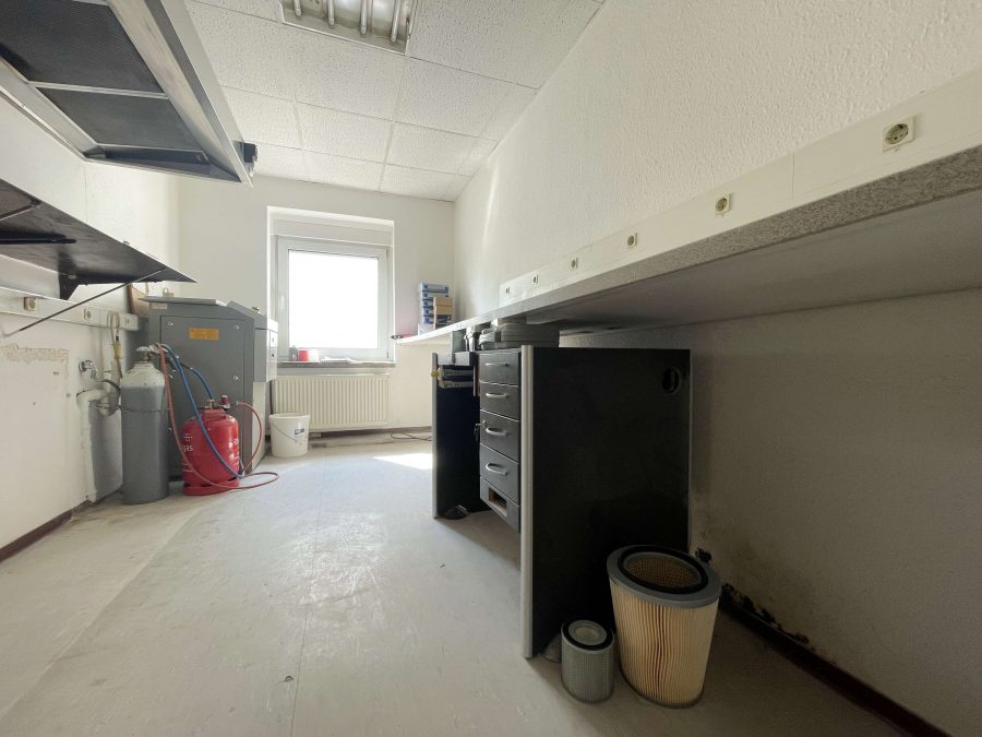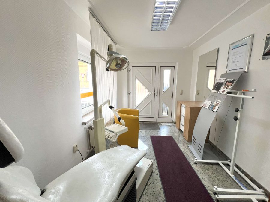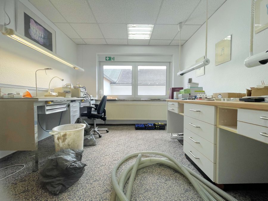 Die lichtdurchfluteten Räume sorgen für eine angenehme Wohnatmosphäre und bieten vielfältige Nutzungsmöglichkeiten. Aktuell wird das Objekt als Zahntechnikerlabor genutzt, wird jedoch vollständig leer geräumt – mit Ausnahme der modernen Einbauküche, die im Haus verbleibt.