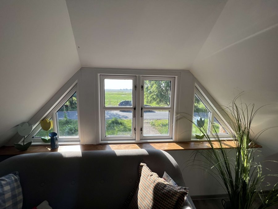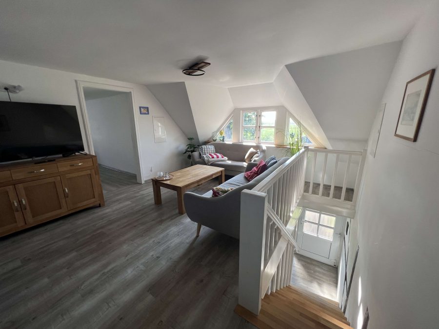 Das Dachgeschoss überzeugt mit einem Drei-Raumapartment und einer Wohnfläche von über 70 m². Der offengestaltete Wohn-/ Essbereich lädt zum Entspannen und Wohlfühlen ein. Den zauberhaften Boddenblick genießen Sie über die Dachgaube des mit Reet eingedeckten Hauses. Vom Wohn-/ Essbereich betreten Sie das Badezimmer mit Dusche und Fenster. Ebenfalls gelangen Sie in zwei großzügig gestaltete Schlafzimmer.