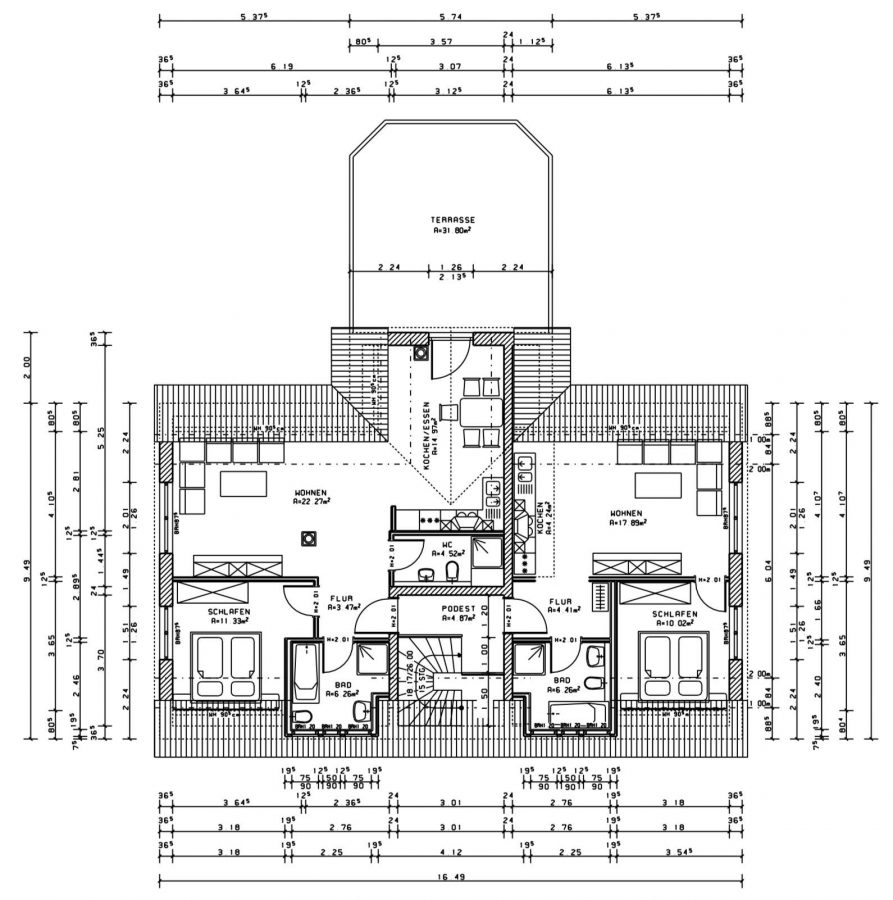 Im Obergeschoss befinden sich zwei großzügige Appartement mit einer Wohnfläche von 50 m² und über 86 m². Die Maisonette -Apartments bieten eine Nutzung bis in den Spitzboden des Objektes an.