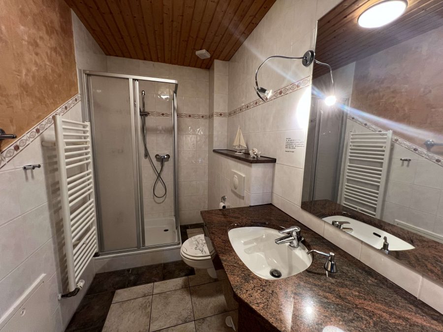 Im Erdgeschoss befinden sich zwei geräumige Appartements mit einer Wohnfläche von 57 m² und 58m², sowie ein großer Gemeinschaftsraum. Dieser bietet einen komfortablen Essbereich mit einer kleinen Küche. Hervorragend können Ihre Gäste hier Ihre Familienfeier zusammen verbringen. Der Zugang zur Terrasse und dem angrenzenden Garten ist von zwei Türen über den Wintergarten möglich. Weiterhin gibt es im Gemeinschaftsbereich eine kleine Sauna und eine dazugehörige Dusche mit WC- Anlage.