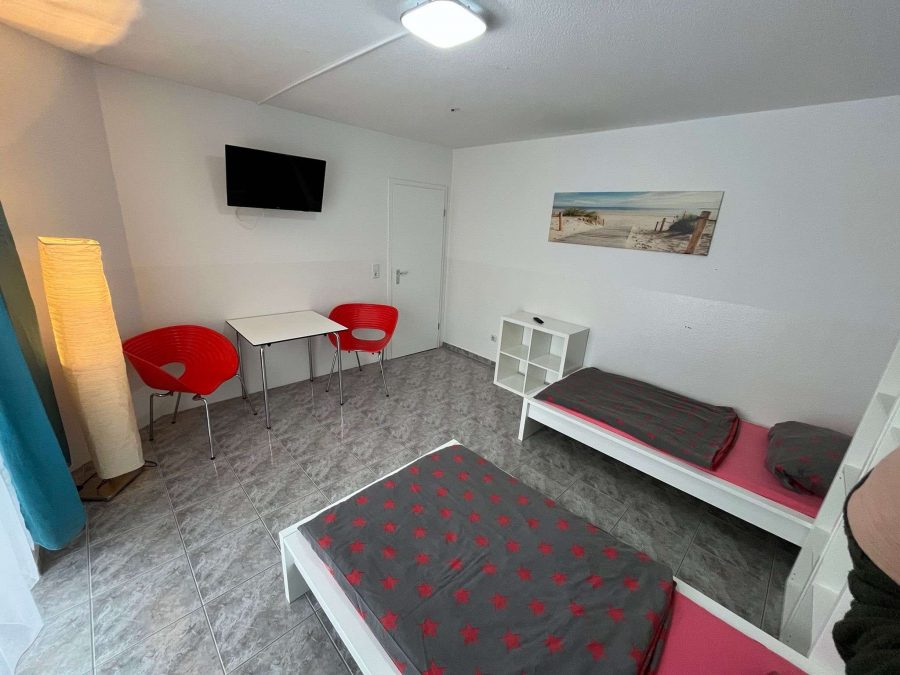 bietet auf einer Fläche von ca. 180 m² vier Apartments an. Zwei Drei-Raumapartments und zwei Zwei-Raumapartments jeweils mit voll ausgestatteter Einbauküche und einem Badezimmer.