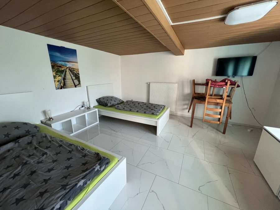 Zum Verkauf steht ein ehemaliger Gasthof, welcher im Jahr 2021 vollkommen für die Vermietung von möblierten Apartments umgebaut wurde. Insgesamt bietet Ihnen die Liegenschaft 9 Apartments mit jeweils einem eigenen Badzimmer mit Dusche, einer voll ausgestatteten Einbauküche und zwei bis 3 Betten. Alle Zimmer verfügen über WLAN und einer TV- Anlage. Die neu ausgebauten Apartments werden mit einer neuen Gas-Zentralheizung angenehm beheizt. Für den Fall der Fälle gibt es sogar ein Notstromaggregat! Im Außenbereich befinden sich Stellplätze und eine überdachte Terrasse für die Gäste. Weiterhin gibt es ein Waschsalon mit fünf Waschmaschinen und fünf Trocknern. Eine große Garage und weitere Abstellräume liefern genügend Platz für Abstellmöglichkeiten und Werkstattbereiche. Die Dachgeschosse in Haus eins und zwei sind noch nicht bzw. teilweise ausgebaut. Hier bestände die Möglichkeit, weitere Apartments auf einer Fläche von ca. 200 m² zu errichten.
