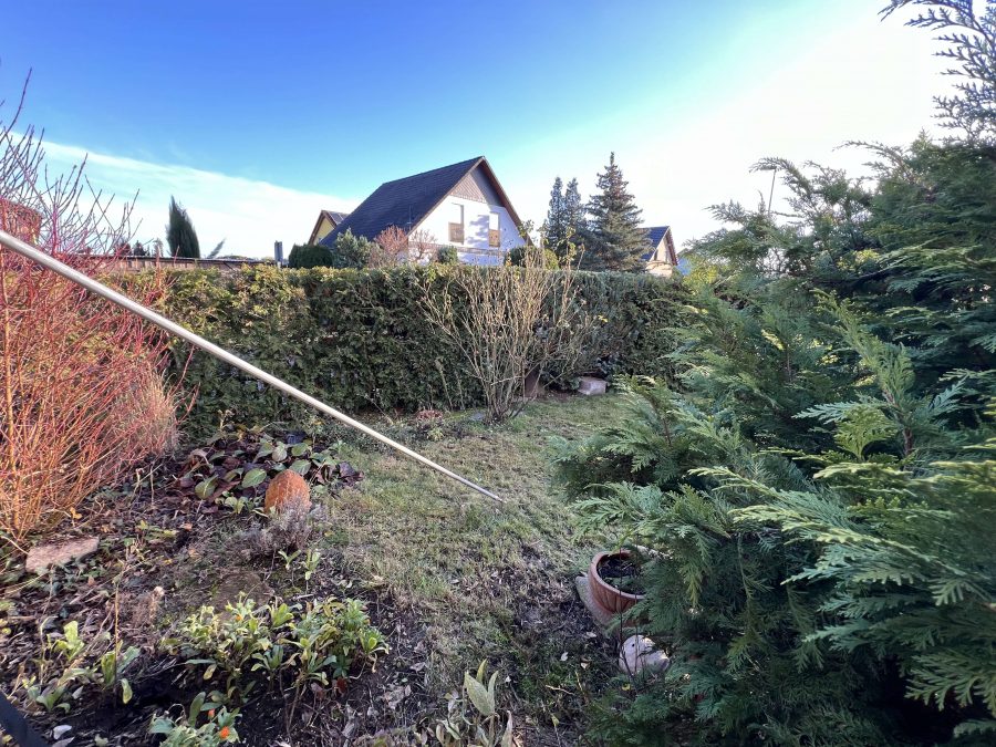 Zusätzlich zum PKW-Stellplatz vor dem Haus gibt es eine Garage gleich neben dem Haus.