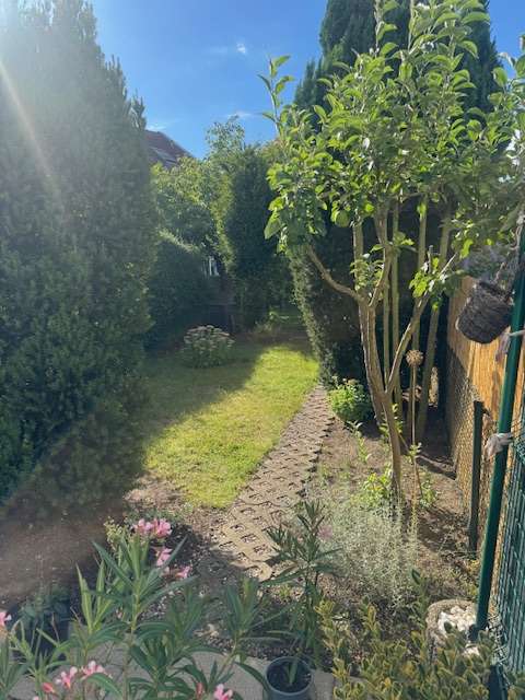 Das vollunterkellerte Reihenmittelhaus erstreckt sich über eine Wohnfläche von ca. 133 m² , hinzukommen ca. 50 m² Nutzfläche im Kellergeschoss. Vor einigen Jahren wurden alle Dachflächenfenster getauscht und 2021 Jahr hat das Haus neben einem neuen Fassadenanstrich auch eine neue energieeffiziente Heizung der Marke „Viessmann“ eingebaut bekommen. Über eine kleine Diele, die auch Zugang zum Gäste-WC bietet, gelangt man anschließend in den Garderobenbereich/Flur, welcher in den großen Wohn-/Essbereich übergeht. Dieser ist mit Laminat ausgestattet. Die Küche ist ein separater Raum und über den Flur erreichbar. Über die bodentiefe Glasfront im Wohnbereich erhält man den Zugang zur Terrasse und dem Garten. Aus dem Wohn-/Essbereich führt die halbgewendelte Treppe in die oberen Etagen des Hauses und in den Keller. Im Obergeschoss befinden sich neben dem Tageslichtbad mit Wanne und Dusche, drei weitere mit Teppichboden ausgestattete Zimmer. Über eines dieser Zimmer gelangt man auf den gartenseitigen Balkon. Eine Etage weiter, im Dachgeschoss ist ein Tageslichtbad mit Dusche und ein weiteres großes Zimmer untergebracht. Dieses Zimmer lässt sich mit geringem Aufwand auch in zwei Räume teilen. Eine entsprechende Tür, für den Zugang in das zweite Zimmer vom Flur aus, ist bereits vorhanden. Auch auf dieser Etage ist Teppich verlegt. Im Kellergeschoss findet man auf 3 Räume, den Heizraum, hier ist auch der Waschmaschinenanschluss anzutreffen, einem Abstell- bzw. Vorratsraum und dem größten der drei Räume. Dieser Raum kann sicherlich auch als Schlaf- oder Arbeitszimmer genutzt werden. Die Voraussetzungen Heizung, Doppelfenster mit Lichtschacht und eine Deckenhöhe von ca. 2,40 m sind gegeben. In einem Garagenkomplex ist der zum Haus gehörende Duplexparker untergebracht. Das Haus befindet sich in einem sehr gepflegten und ordentlichen Zustand.
