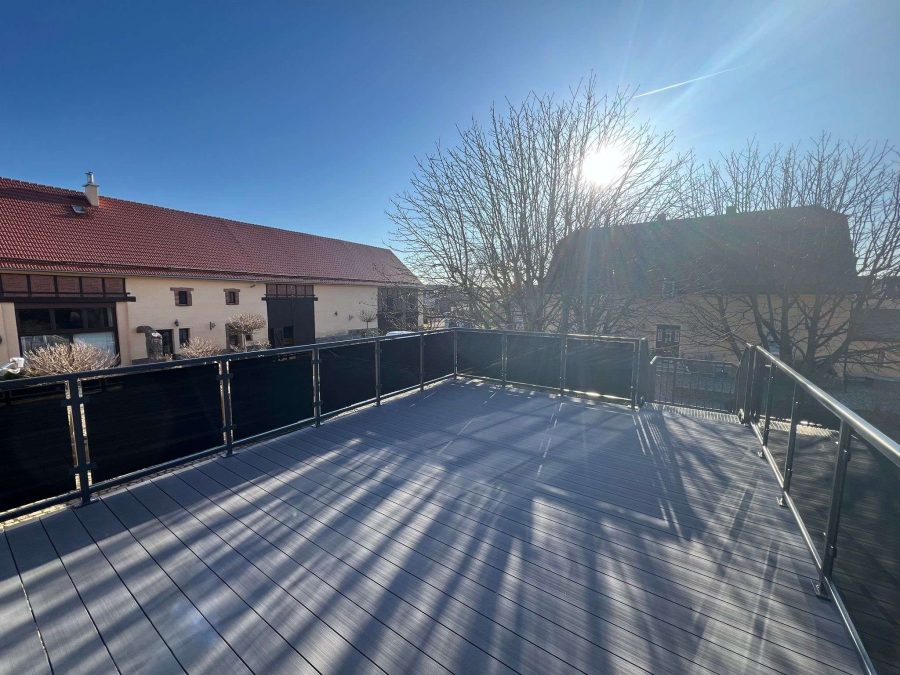 Diese exklusive großzügige Terrasse mit einer Fläche von ca. 24 m² bietet Ihnen Zeit zur Erholung. Im Innenhof selbst befindet sich ein separater Abstellraum sowie zwei PKW-Außenstellplätze.