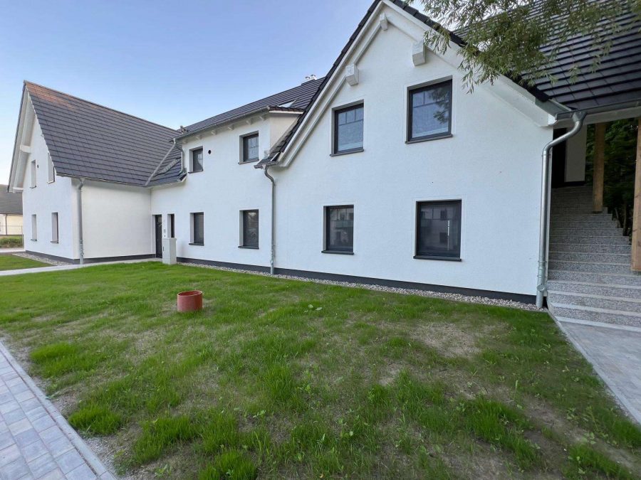 Zwei Appartements, je eine im EG und im DG, verfügen über separate Eingänge am Westgiebel, alle anderen Appartements sind über einen gemeinsamen Hauseingang mit Hausflur im EG und ein Treppenhaus zum DG zu erreichen.
